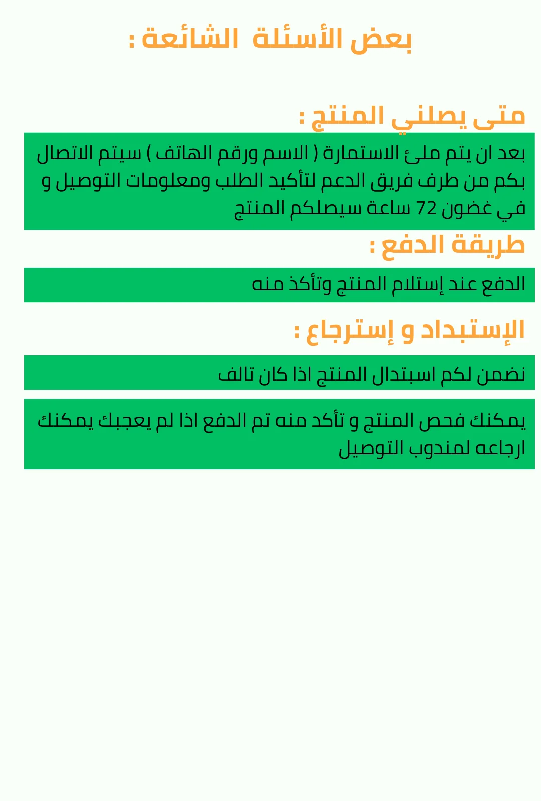 عرض خاص: التوصيل بالمجان+ الدفع عند الاستلام